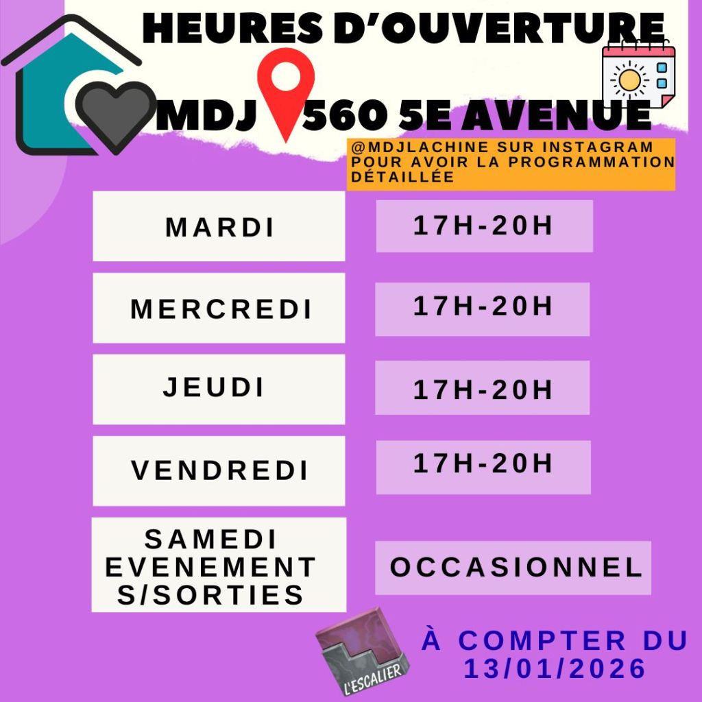 MDJ L’Escalier Lachine – Équipe d’animation 📧 info@mdjescalier.com 📞 514 637-0934, poste 200 (laisser un message) 📱 Instagram : @mdjlachine